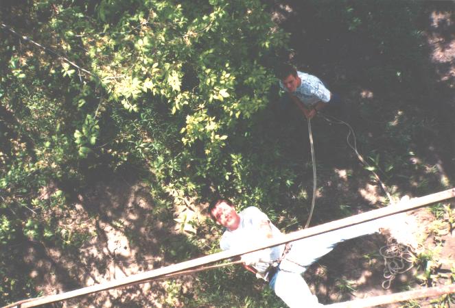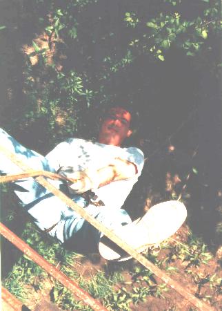 Brent and Darin Stephens were really good friends and big outdoorsmen. They wanted to get me involved with one of their favorite sports: rappelling. As if rappelling isn't insane enough, they like to do it off a bridge. And they convinced me to do it too. I'm was just sooo daring and butch that summer. Please notice that in the one on the left, I'm dangling completely upside down. YEEEEEEEEEEEEEhaaaaaaaaaaaaaaaaaaa!